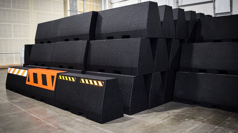 Rubber barrier reduces plenty of carbon emissions (compared to concrete and plastic) Sustainable, circular, & environmentally friendly.